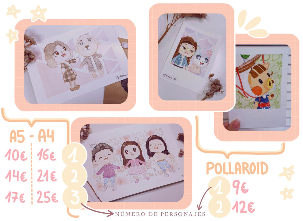 Estos precios solo incluyen una única figura o persona. En caso de querer otros elementos: como un fondo complejo o más de un personaje, se considerará como un extra.Si tienes alguna idea en mente y no encaja con esta tabla, no te preocupes, ¡no dudes en preguntarme sin compromiso!